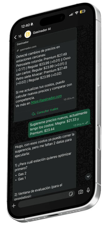Gasinador aprende y sugiere precios de máxima utilidad diaria para gasolinas regular y premium.